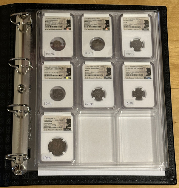 Något som man dock bör beakta när det gäller äldre slabbade mynt är att de personer (japp – människor!) som sitter på kontoren i USA och slabbar mynt, verkar vara mycket ovana med att bedöma medeltida svenska mynt. På de auktioner med material från L.E. Bruuns samlingar, som nu börjats säljas via Stacks&Bowers, är alla mynt slabbade – även de medeltida. Så här finns möjlighet att bedöma hur företagen sätter kvalitet på slabbade medeltida svanska mynt.