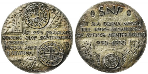 Till 1000-årsminnet av Olof Skötkonungs första mynt utgav Svenska Numismatiska Föreningen år 1995 en medalj för att uppmärksamma detta. DEn har nr 74 i SNFs medaljserie.